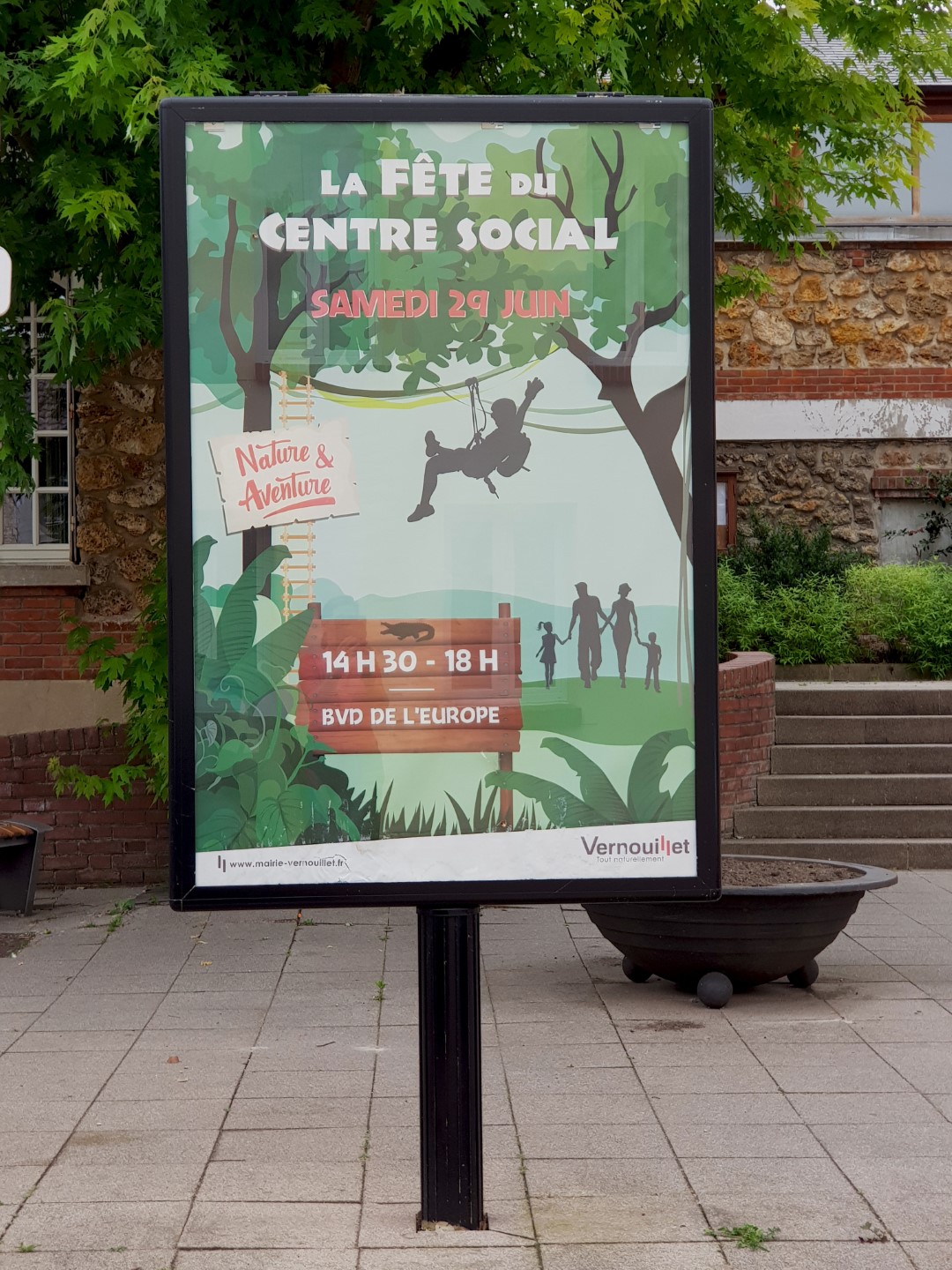 Réalisation d’une affiche (sous plusieurs formats) à l’occasion de la fête du centre social pour la Mairie de Vernouillet (78).
